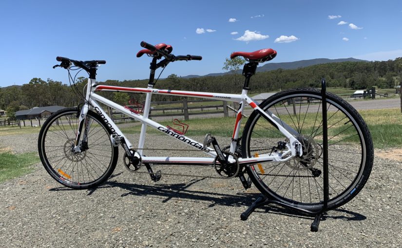 One of the bikes in the Museum is Roger, our 2015 Cannondale T2 tandem. Roger is our second tandem; the first (Myrtle) was a surprise for my wife, who (at the time) could not ride a bike. I found Myrtle as a frameset in a bicycle graveyard, squeezed it into the back of the car, … Continue reading Roger, the Tandem